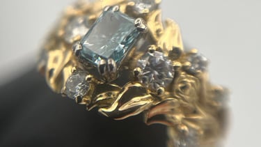 Diese besondere Kreation vereint die Liebe zur Natur, zum Meer und zur Freiheit in einem einzigartigen Verlobungsring. Im Zentrum strahlt ein 0,5 Karat Ice-Blue-Diamant im edlen Radiant-Schliff – eingefasst in kühlem Weißgold, um sein klares, meerblaues Leuchten perfekt zur Geltung zu bringen.