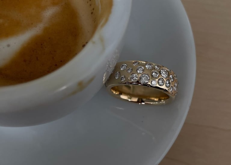 Mit diesen Worten begann ein ganz besonderer Kundenwunsch. Die Idee: Ein Ring, der den Zauber des Sternenhimmels einfängt – sichtbar, spürbar, tragbar.